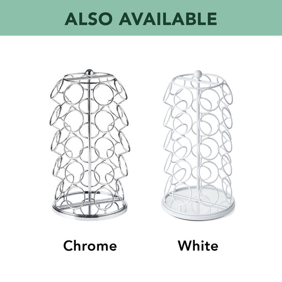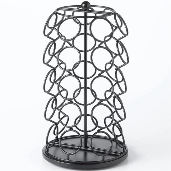 Details: The Nifty Carousel for single serve coffee podss elegantly displays all your favorite single serve coffee podss. The lazy susan base rotates 36--degree, making it extremely easy to find and select your favorite single serve coffee pods flavor. The sleek black powder-coat design looks great on any kitchen counter top. The Nifty Carousel for single serve coffee podss will hold up to 35 single serve coffee podss. Easy spin knob