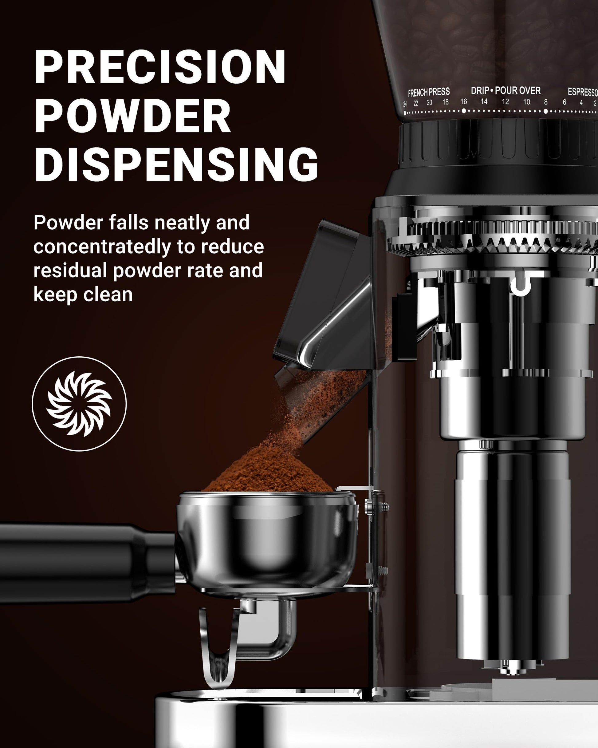 - PRECISE GRINDING SYSTEM: Our coffee grinder patented coffee grinding system is designed to provide a precise and consistent grind, whether you prefer espresso, drip or French press. It ensures a precise grind based on the amount of coffee beans used, resulting in a consistently delicious coffee. Tips: It's precise except for the first time you use it, when there will be coffee powder residue.