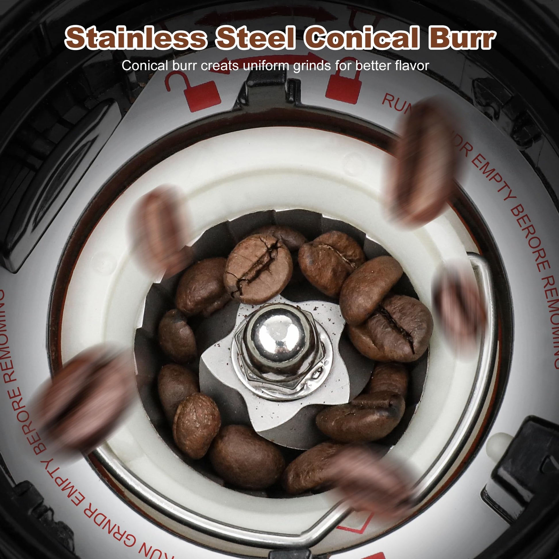 - 【Premium Conical Burr Coffee Grinder】: The coffee bean grinder is designed to minimize grinding heat and protect the essential oils in the coffee bean. High-quality conical burr provides uniform and precise grinding, resulting in perfect coffee extraction process. The stainless steel conical grinder and all other parts are designed to provide durability for long-term use.
