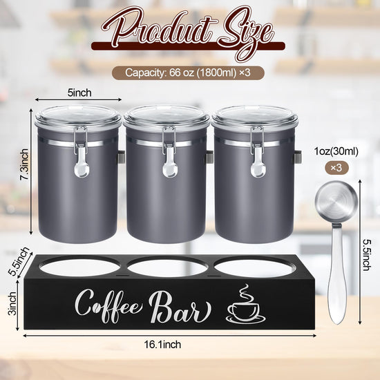 - Convenience Features: this airtight coffee canister set comes with 3 coffee canisters, equipped with 3 coffee spoons for easy measurement control and a wooden shelf for storage; You can either hang the spoons on the side of the jar or place them on the wooden shelf for a tidy storage solution; Notice: the holes in the rack hold two spoons, and another spoon is provided as a spare